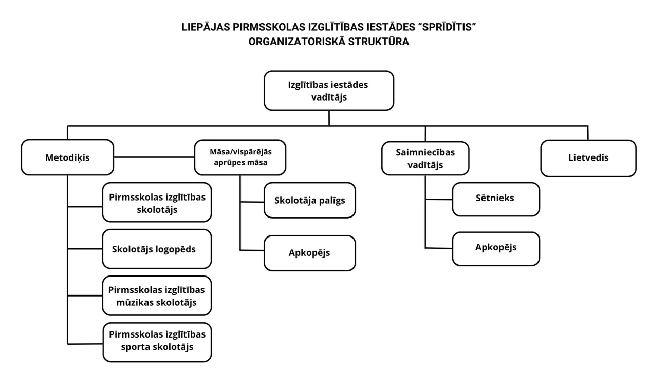 Par izglītojamiem rūpējas 30 darbinieki: 12 pirmsskolas izglītības skolotāji, 6 skolotāju palīgi, logopēds, metodiķis, mūzikas skolotājs, medmāsa, saimniecības vadītājs un citi tehniskie darbinieki.